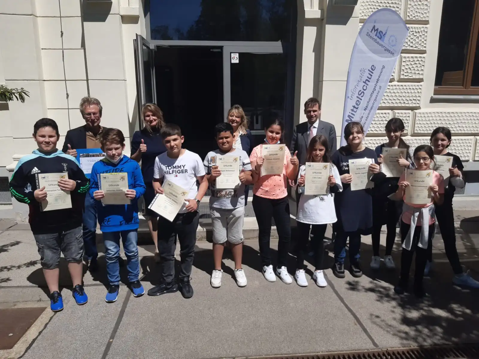 Mit der Unterstützung durch den Kursleiter Thomas Zehtner wurde trotz Schichtbetrieb und zahlreichen Lockdowns der DigiFö-Computerförderkurs erfolgreich zu Ende gebracht. Dafür gab es spezielle Urkunden, die vom Sponsor der Laptops und des DigiFö-Computerförderkurses, Herrn Mag. Robert Gulla (Geschäftsführer von LUKOIL GmbH) gemeinsam mit der UMDASCH group jedem Kind persönlich überreicht wurden.