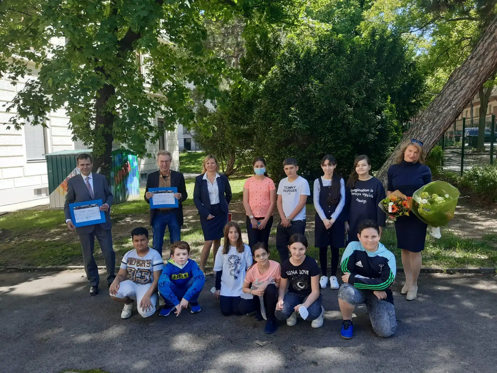 Die Direktorin, Frau Brigitte Stieg, bedankte sich mit ihren SchülerInnen der 1. Klasse mit einem Blumenstrauß an die Projektkoordinatorin und Initiatorin der “Digitalen Förderinitiative”, Frau Mag. Schindler und beim Herrn Mag. Dr. Gröpel mit einem Geschenk. Anschließend erwartete uns ein kleines Buffet mit . Wir bedanken uns für diese wunderschöne Abschiedsfeier und wünschen allen einen erfolgreichen Schulabschluss in diesem Schuljahr!